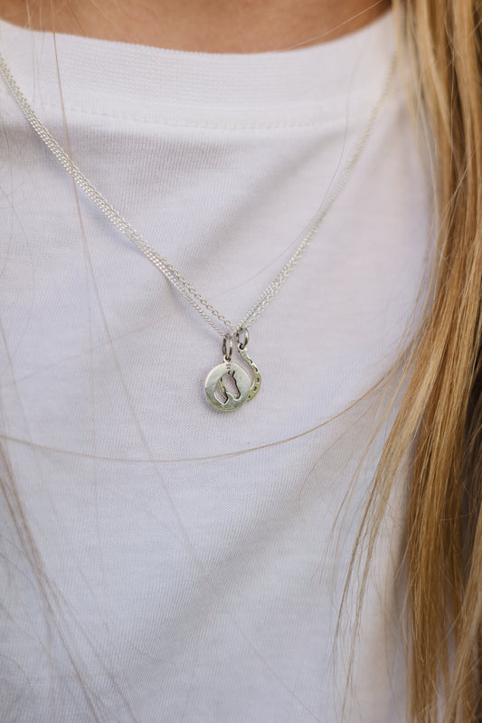 Argentium Silver Horse Head Pendant with Sterling Silver Chain